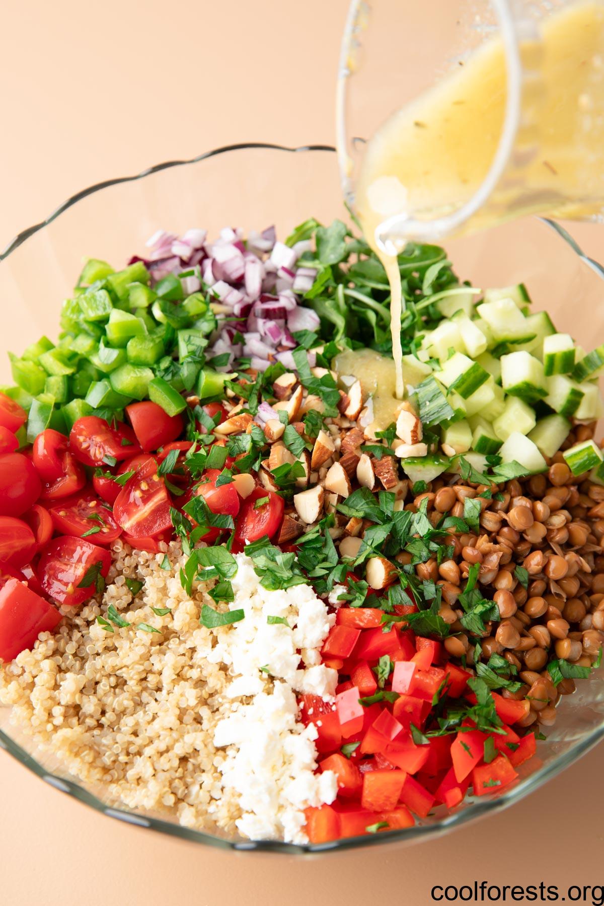 This colorful and nutritious Mediterranean Lentil Salad features fiber packed quinoa, vegetables, and lentils tossed in a flavorful Greek vinaigrette and sprinkled with chopped almonds and feta. It’s SO delicious! Today we’re going to turn an unsuspecting can of lentils into an irresistibly delicious and nutritious salad! We’ll start with a fluffy bed of quinoa … Read more