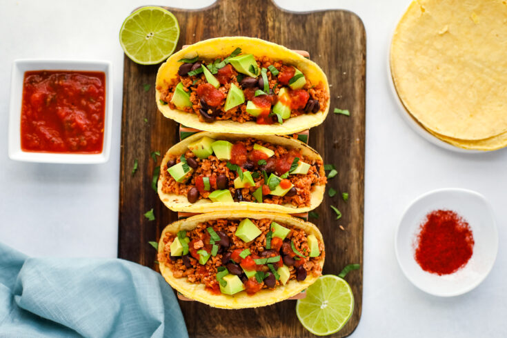 These vegan TVP tacos are a deliciously spicy recipe for your next taco night! Textured vegetable protein, made from soy, is a “meaty” plant-based alternative to your favorite taco filling!