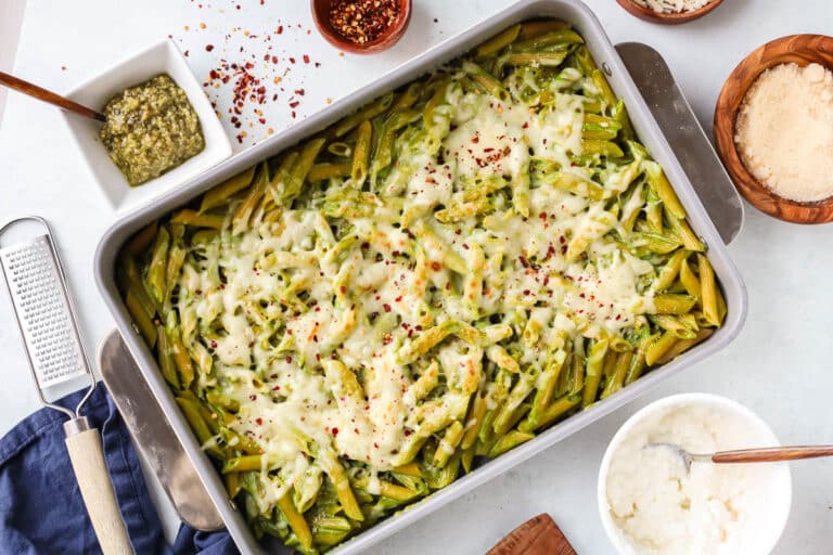 This baked pesto pasta is the ultimate one-pan meal—creamy, flavorful, and packed with protein thanks to cottage cheese. It’s the perfect dish for busy weeknights or when you want a comforting, cheesy dinner in minutes!