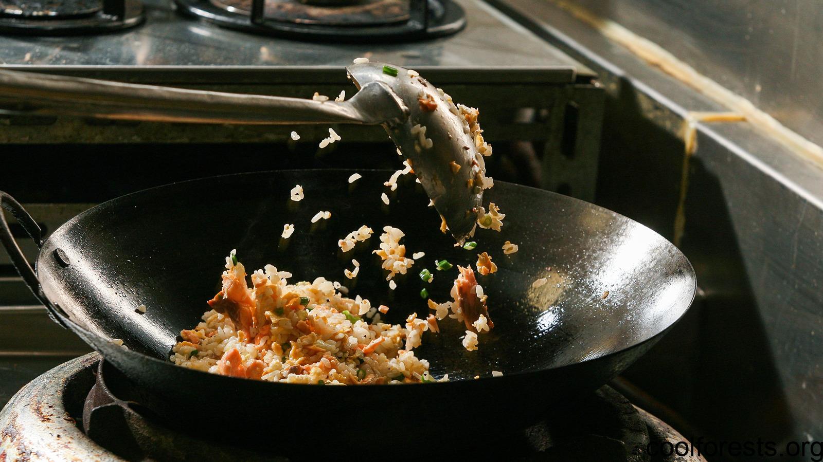 First, you’ll want to find your very widest pan or your wok if you have one. You’ll also want to season it using very hot heat and vegetable oil before you start cooking with it for the best results. And then, you’ll want to set your stove-top burner to the highest setting and preheat your pan. That should get your fried rice nice and smoky.