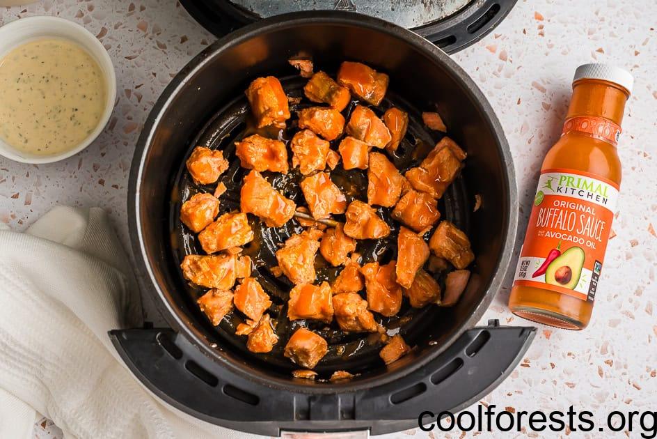 - Add the buffalo sauce after cooking. Cook the salmon first, then toss it with buffalo sauce. This keeps the salmon from burning and gives the bites the best texture.