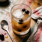 I served this at a Harry Potter movie marathon and it became the only drink anyone wanted for the rest of the night. Spiced rum, butterscotch schnapps, peach brandy, and ginger schnapps stirred together over ice and poured over a single large ice cube in a rocks glass. Garnished with maraschino cherries. It tastes like butterscotch with a ginger burn at the end and a warmth from the rum underneath.