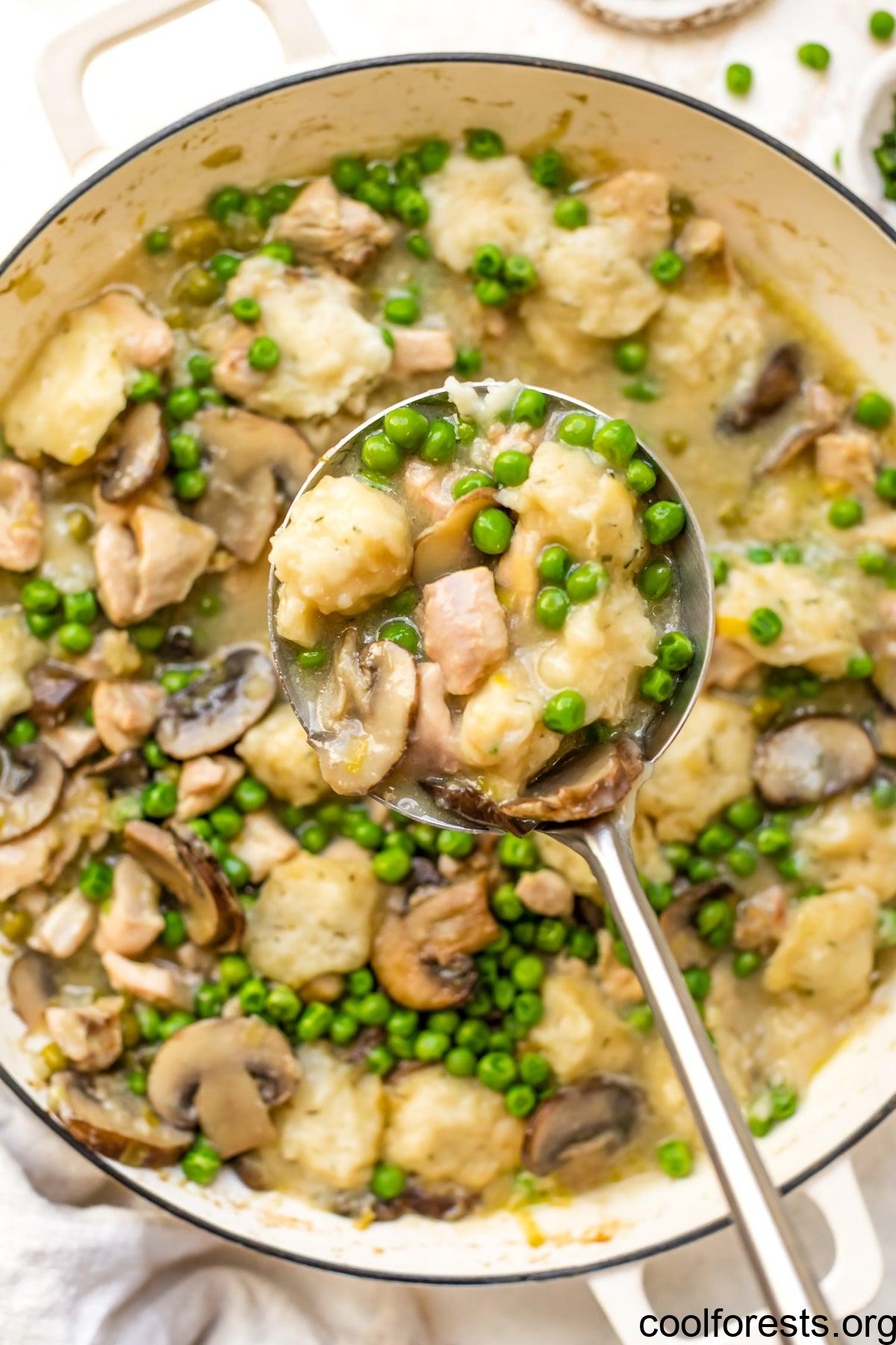 - Chicken: Swap thighs for 2 pounds of diced chicken breasts. You can also use leftover cooked chicken (rotisserie chicken is a great shortcut!). Add it when you add the dumplings.