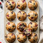 Two cups of berries for twelve muffins is generous. Every bite should have fruit in it.