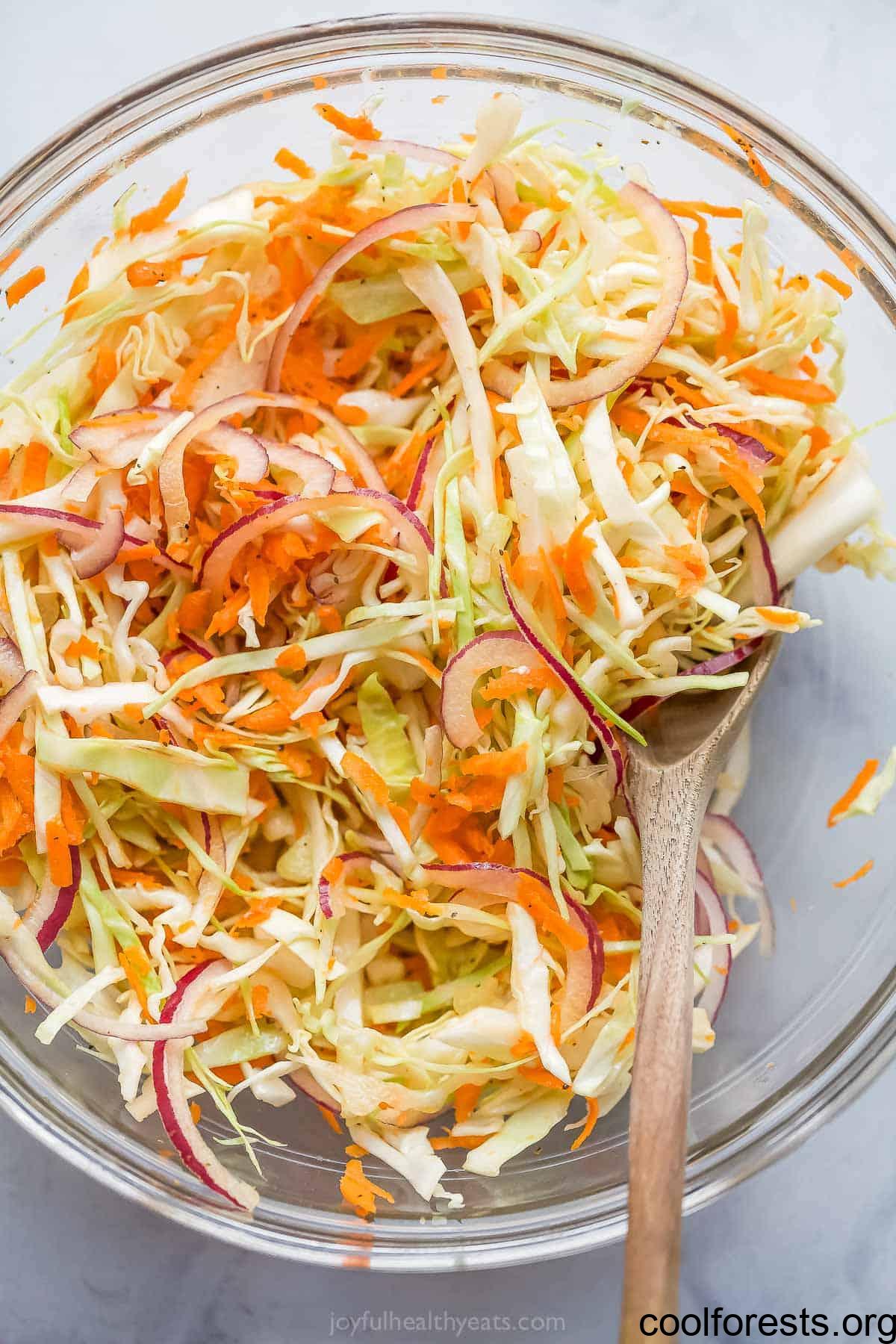 - No mayo. Mayo is a polarizing ingredient! If you’re looking for a coleslaw recipe without mayo, this is IT.