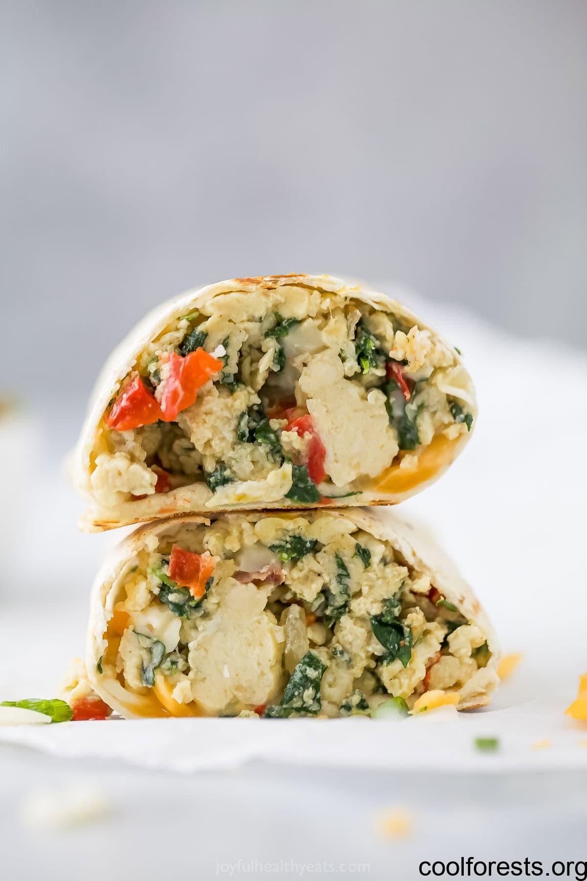 - Assemble and wrap. Fill the tortillas with eggs, cheese, and bacon, then wrap them tightly and freeze.