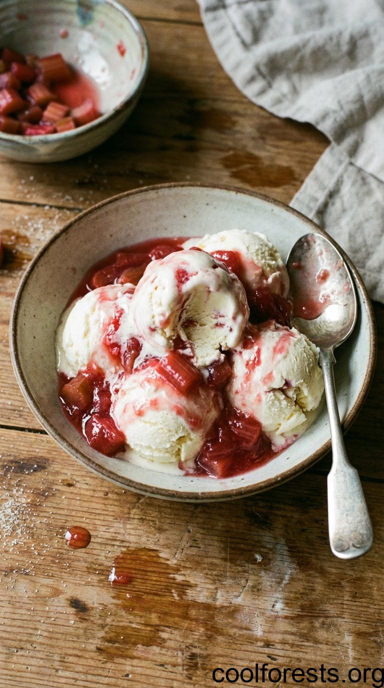 Homemade Mascarpone Ice Cream with Fresh Rhubarb Compote