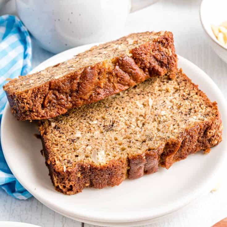 Transform your everyday Banana Bread recipe into a tropical treat. Coconut Banana Bread is full of crunchy macadamia nuts and toasted coconut flakes.