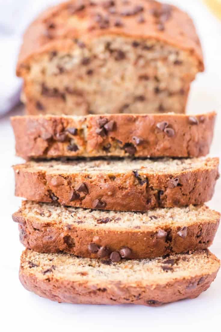 This moist Banana bread is packed with chocolate chips and will make any banana bread lover happy.