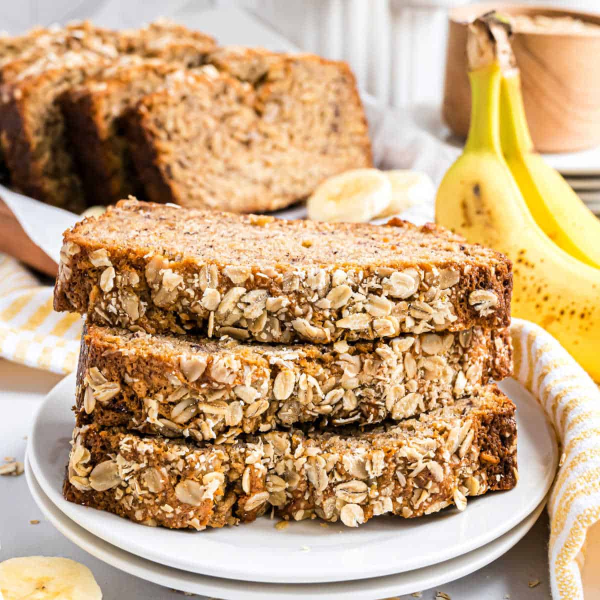 Oatmeal Banana Bread is a classic with a slight twist, hearty oats mixed into the batter and sprinkled over the top for a little more staying power.