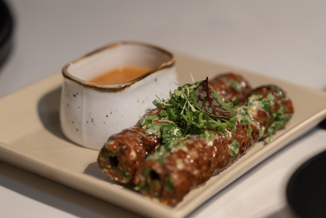 On a windy Tuesday night, there wasn’t an empty spot in the 80-seat, dimly lit dining room. INDN is the brainchild of husband-and-wife dream team, Sim Bakshi and Kanika Vij, who saw a gap in Manhattan’s dining scene and knew exactly how they wanted to fill it. The result is a vibrant playground where cocktails and small plates take center stage, channeling the pulse of Delhi’s nightlife into something that works effortlessly for New York City.