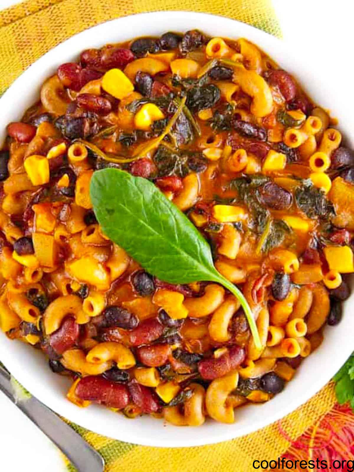 Spices: Chili powder, ground cumin, and ancho chili powder season the beans and pasta perfectly. I use fresh garlic, but bottled minced garlic works in a pinch. Don’t forget salt and black pepper to taste. You can always reduce the chili powders if you prefer a milder heat.