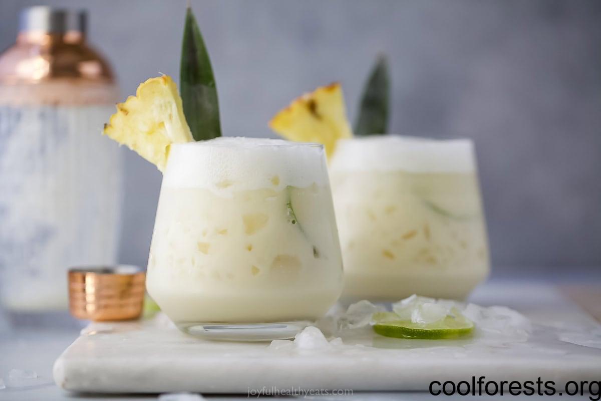 Coconut and pineapple mocktail in glass.