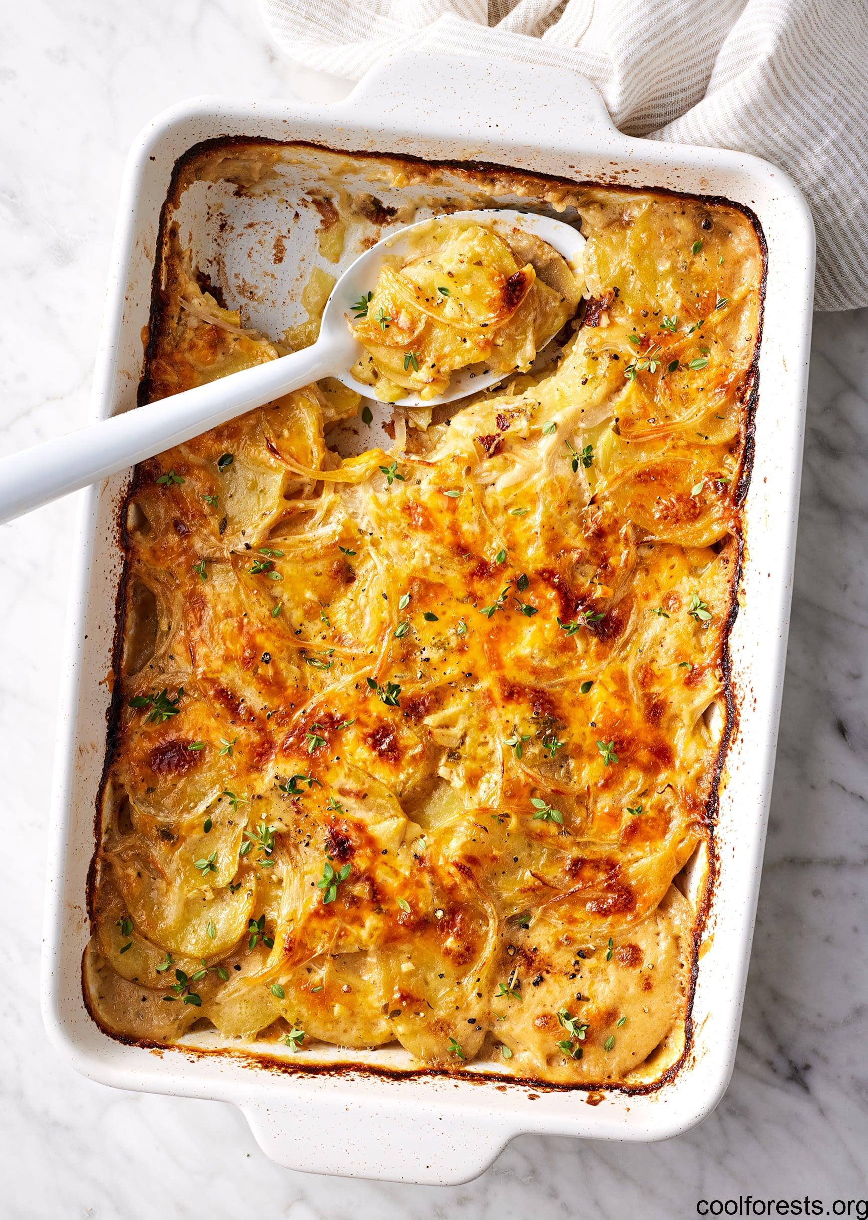 I know some readers will point out that because this dish includes cheese, it’s technically potatoes au gratin. Traditional scalloped potatoes are baked in a milk or cream sauce without cheese.