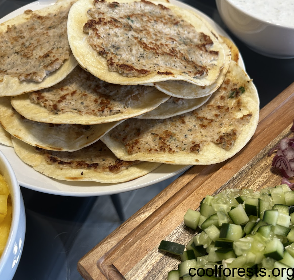 • To serve: top each tortilla with a generous dollop of tzatziki sauce, tomatoes, cucumbers, and red onions. Garnish with fresh parsley and a squeeze of fresh lemon if desired.