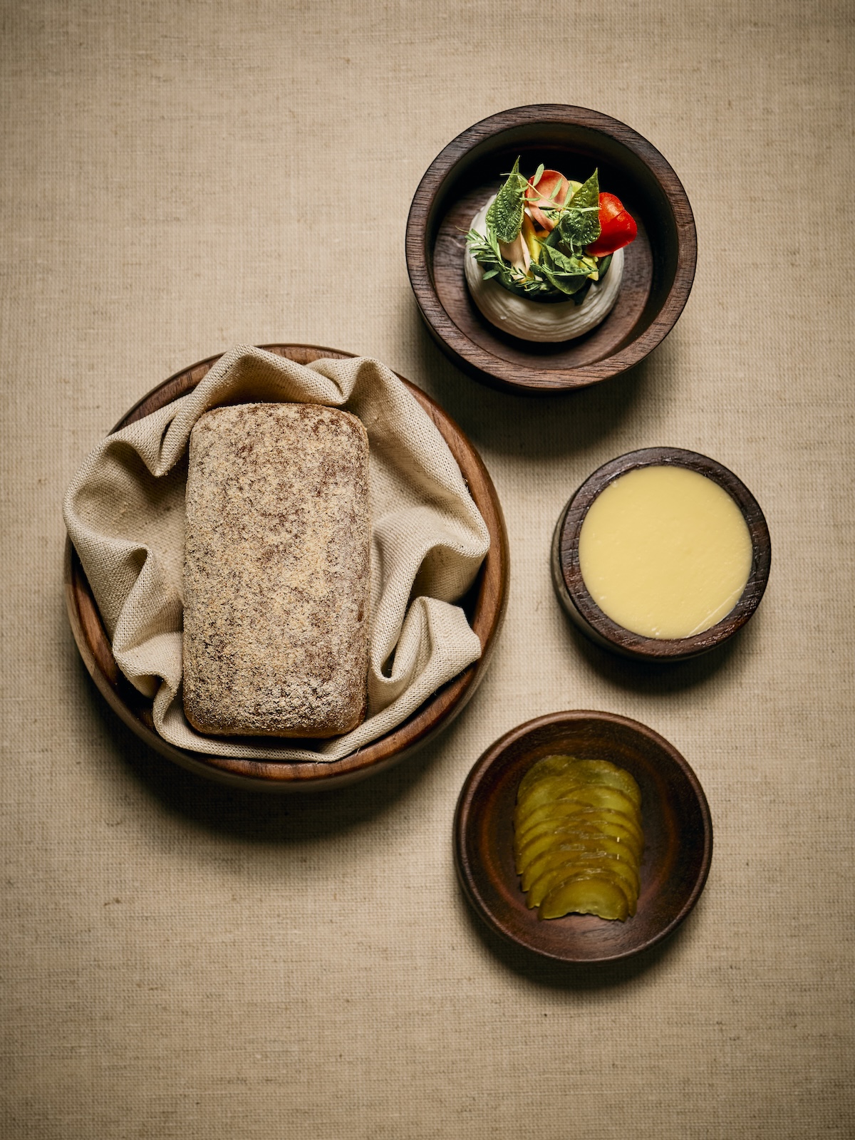 Desserts reject sugar as resolution. Fermented pear juice with sour cream, rose geranium and whey caramel leans into acidity. Grilled apple ice cream with acorn cake, cold-pressed rapeseed oil and spruce tastes more of forest than patisserie. Frozen acorn cake miso challenges expectations. Sweet wheat bun with birch syrup and brown butter nods gently to comfort. A final bite of unripe juniper with dried blueberries closes the meal with clarity and freshness.
