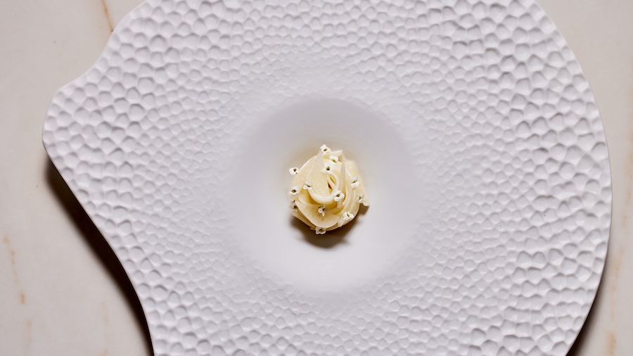 A more luxurious moment: Golden Osetra caviar with fermented potatoes, white Alba truffle and hönökaka. It could easily tip into excess, but the fermented potatoes ground the caviar while the truffle appears sparingly.