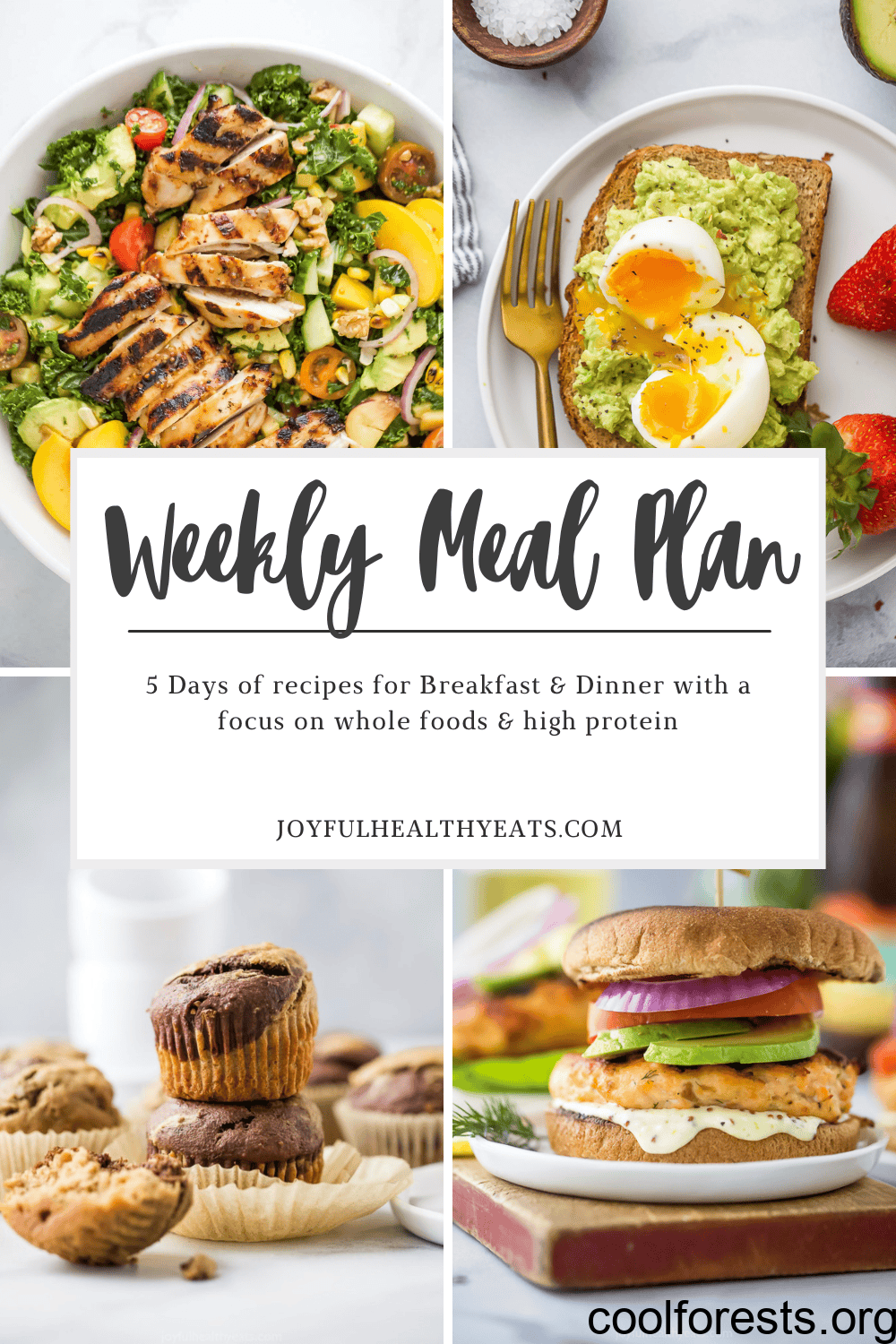 This healthy weekly meal plan has 5 days of easy breakfast and dinner recipes made from real, wholesome ingredients and a high protein focus in mind. Grab the free printable shopping list to make meal prep simple and stress-free.